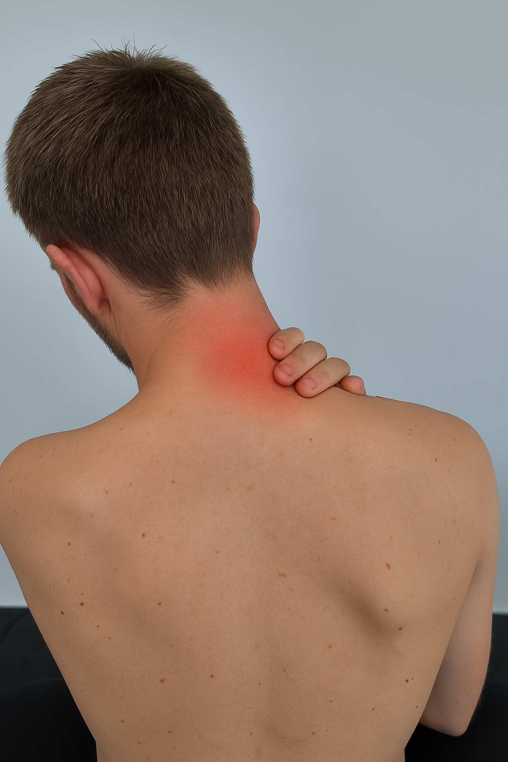 - Muskulære spændinger og triggerpunkter: Ofte forårsaget af ensidig belastning eller statisk arbejde, som fører til øget spænding og nedsat blodgennemstrømning og funktion i nakke- og skuldermuskler.